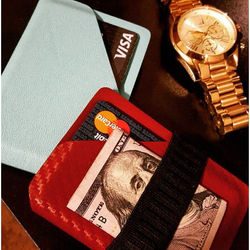 Each "Standard" wallet is handmade in the U.S. and fits 4-5 standard cards. It also includes an elastic band to keep money, receipts and other valuables handy. They are made from sturdy kydex material and come in a large variety of colors and prints.